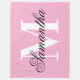 Black and White Big Monogram Pink Fleece Blanket
