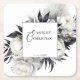 Black and white boho peony flowers pampas grass elegant wedding personalized tableware template paper coaster