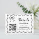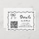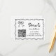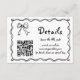 Black and white Hand drawn squiggle scribble whimsical retro French style wedding details enclosure card. This black and white enclosure card offers a whimsical touch to your wedding details. Featuring a retro French style, the design incorporates a playful hand-drawn squiggle frame and a charming scribble bow illustration. The word "Details" is featured prominently, guiding your guests to the purpose of the card: to provide access to more information. A thoughtfully placed QR code allows guests to easily scan and access all the specifics, from important times to location information. This card blends artistic hand drawn elements with smart functionality, providing a stylish and convenient solution for sharing important wedding details.