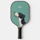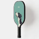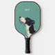 This pickleball paddle design features a boxer dog illustration over a green background with the customizable default text "upbeat". This is a great design for Boxer owners, dog owners, and dog lovers.
