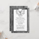cool stag or bachelor party design features a black and white photograph of rustic wood planks background. There is a solid white rectangle with dark grey trim with customizable text in black font. At the top is a white circle with dark grey trim. In the center is a black and white pencil drawing of a buck/stag head. Around the circle is text that says Stag Party. Stag Party. Stag. Stag Party. The reverse side of the invitation has the same black and white wood photograph. This is the perfect invitation for your stag and bachelor party.