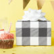 Custom-designed cottage style Christmas wrapping paper featuring festive black and white buffalo check pattern.