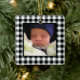 Create your own personalized baby's first Christmas photo ornament with a black and white buffalo plaid gingham pattern.