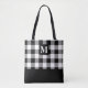 Black and White Monogram Buffalo Plaid Tote Bag you can customize with your initial.