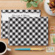 Black and white buffalo plaid floral envelopes with a return address featuring sunflower flowers and string lights on a black and white checkered background. Matching items available.