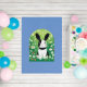 A cute black and white bunny in a field of wildflowers. Digitally created in a cartoon style. Perfect design for kids and adults on many trendy products! Customize your background color or text!