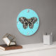 Black and white butterfly, turquoise background large clock