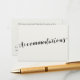 Black and white calligraphy wedding accommodations business cards with customizable text