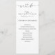 A modern black and white wedding program featuring elegant calligraphy and a minimalist layout. This sleek and sophisticated design outlines the order of ceremony, ensuring guests can follow along with ease. Perfect for contemporary, formal, or rustic weddings, this program adds a stylish touch to any ceremony.