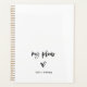 This simple and stylish black and white planner says "my plans" in casual, modern script typography, along with an elegant matching heart and a place to add your name and the year.