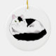 Lightweight, smooth, pure white ornament with nice sheen. Perfect size to be seen from across the room ... and to attract closer inspection! Price was great for ordering enough for the whole family! Clear, bold black design just as requested. Matches the order exactly. Just so nice!