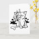A cute cartoon style design of a black and white cat. This cat is sitting up and with his tongue out. The cat is mostly white and has a black background. This black and white cat design looks great on these greeting cards
