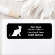 Black and white cat labels with custom address. Return address labels for cat lovers. Cute design with white silhouette of a white kitten. Personalizable text and colorful background color.