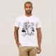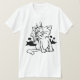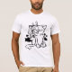 A cute cartoon style design of a black and white cat. This cat is sitting up and with his tongue out. The cat is mostly white and has a black background. This black and white cat design looks great on this mens t-shirt. Perfect for yourself or as a gift