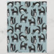 Lots of lovely little black and white Tuxedo cat pattern on a duck egg blue background.