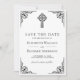 Amaze your guests with this vintage style christian wedding save the date featuring an elegant black ornate border and Celtic cross against a white background.