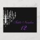 Black and White Chandelier with purple text design table number postcards that you can easily customize with your specific table numbers before ordering. Look for our matching Black and White Chandelier wedding invitations, stamps, RSVP cards, thank you notes, postage, and more.