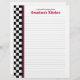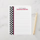 Letterhead designed to fit Grandma's Kitchen Recipe Binder, this has a black and white checkerboard image along the side with a red accent line. You will need to punch holes along the side of the pages to add this letterhead to a binder.