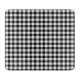 A glass cutting board with a classic black and white checked country style gingham pattern.