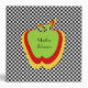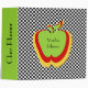 Stylish teacher's custom class planner binder, with a black and white checkered background, on the front and back, and a solid green, on the spine of the binder. Graphics of 3 different colored apples layered, on top of each other, decorates the middle front. Black text, on the front and spine is fully customizable. Personalize the text to say what you want. Great as teacher's planners or grade books. Makes a great gift for your favorite teacher. Purchase the inserts you need separately from office supply stores.