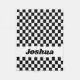 Cool custom fleece blanket has a black and white checker flag design on the front. Personalize it by changing the name to whatever you like. This would make a great gift for the race car enthusiast in your life. Please see our other custom checker flag items.