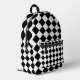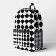 Backpack all over print cut sew style storage bag printed with Black And White Checkerboard Checkered Flag Design graphic art illustration and select products collection by TheFabricSeal print on demand shop at Zazzle.com #ZazzleMade https://www.zazzle.com/store/thefabricseal TheFabricSeal©️Original.