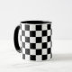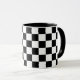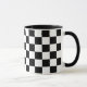 Simple black and white checkerboard pattern. This mug was created years back when the print area was slightly different. But, you can still customize the pattern by filling the print area with the image and changing the background color. We've displayed this on the ringer mug because it is attractive, but it works with the basic mug too.