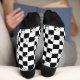 Black and white checkered floral pattern socks