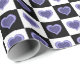 Black and white checkered pattern, purple hearts wrapping paper