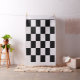 Stylish geometric fabric features a bold checkered pattern of black and white rectangles.