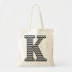 Black and White Chevron "K" Monogram Tote Bag. Personalize your stuff with your initial in style and customize the background color to suit your taste or décor.
