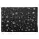 Black and White Christmas Snowflake Pattern Placemat. Beautiful white and grey snowflakes in different shapes and sizes on a black background.