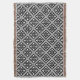 Throw blanket with nordic knitting inspired black and white snowflakes christmas pattern.