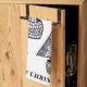 Black and White Christmas Tree Drawing kitchen towel, You can change the text.