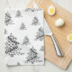 Black and White Christmas Tree pattern Kitchen towel. Artistic hand-drawn ornament pattern on Christmas trees.