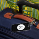 White circle with customizable monogram. Try a different color that is more eye catching at the baggage carousel. Try a different contemporary font.