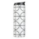 Black and White Circle Stripe Pattern Thermal Tumbler designed by Nisha Prabhu CuteHomeGifts. Mid century modern design featuring black and white circles with black color horizontal vertical stripes on white background.