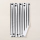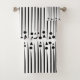 Black and White Circle Triangle Stripe Pattern Bath Towel Set. Simple black vertical stripes with small circles and triangles on a white background.