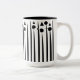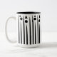 Black and White Circle Triangle Stripe Pattern Two-Tone Coffee Mug. Simple black vertical stripes with small circles and triangles on a white background.