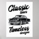 Black and white classic car illustration. poster