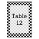 Black and white diamond-checkerboard table card. Delete or change sample text, font, font color, font size or click the rotate button to change the images to a diamond shape pattern. Images can be re-sized.