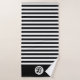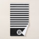 Crisp black and white never goes out of fashion. It is an elegant classic combination that looks good in any bathroom. The contemporary simple striped pattern is softened by the playful script used for the initial.