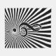 Classical and chic black and white treble clef musical note on a retro styled black and white starburst background.