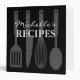 Personalized black and white cooking utensil recipe binder book Custom cookbook with spoon, knife, whisk, spatula and personalizable color plus name. Cute personalized baking / cooking gift idea for women; ie mom, mother, mother, aunt, wife, sister, grandma, chef, friend, daughter, girlfriend, mama, grandmother etc. Country chic design with kitchen equipment design. Elegant typography for custom name. Cute modern Birthday or Holiday gift idea for dinner party. Also nice for weddings or bridal shower. 3 Ring avery binder / album.