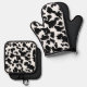 Black And White Cow Hide Fur Pattern Oven Mitt & Pot Holder Set