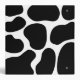 A monochrome design inspired by the pattern of cows. A black and white irregular pattern.