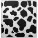 This item is made with a black and white cow print pattern.