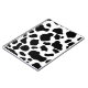 This item is made with a black and white cow print pattern.