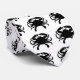 The shape of a hairy-legged crab in black and white. The design was adapted from a vintage image of a crab. Do you have a color request for the crab or background? Send a message with link and interests.