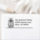 Lovely label done in black and white. Lovely graphics of a black cross and flowers surround it, all made to look like it has been embroidered. Lovely return address label, good for any use.